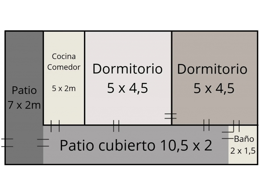 Patio cubierto: 10,5 x 2mts.